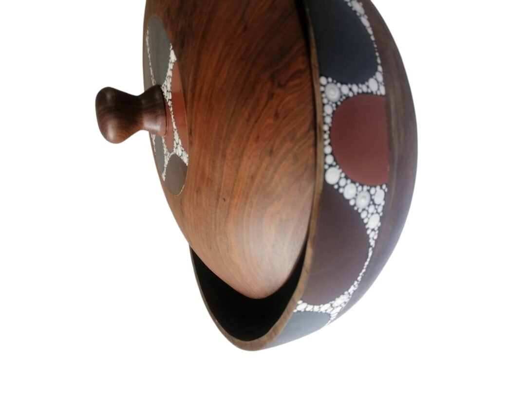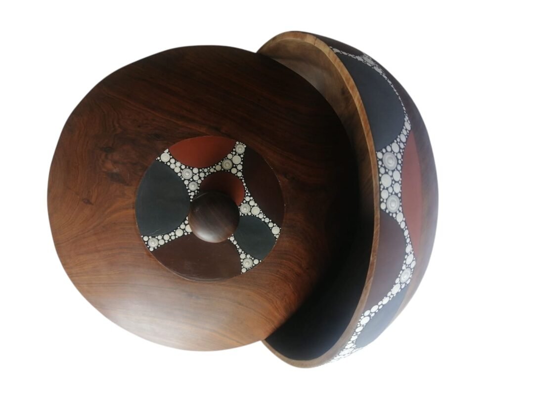 Ensaladera hecha y pintada a mano por nuestros artistas artesanos, de una sola pieza de madera Única.